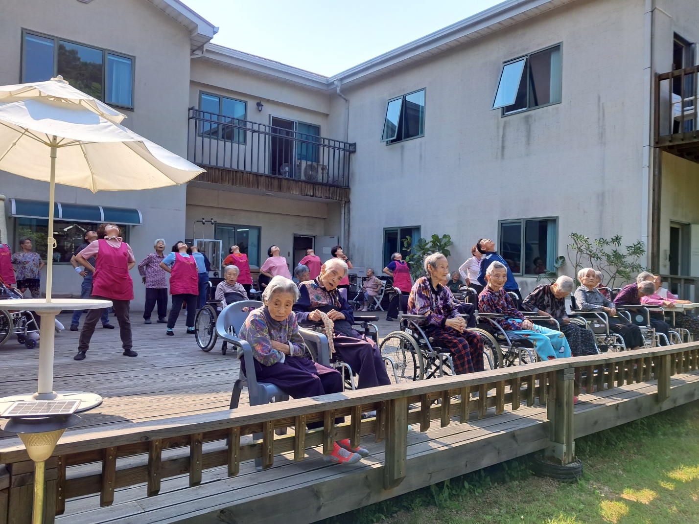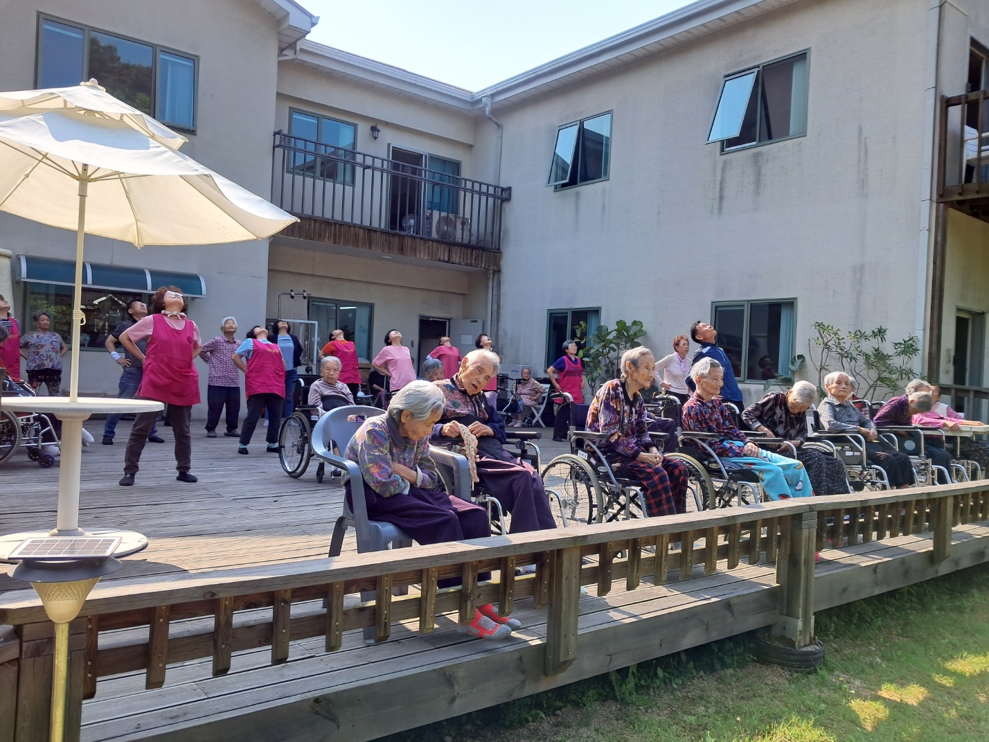 맑은 공기 마시며 아침체조~