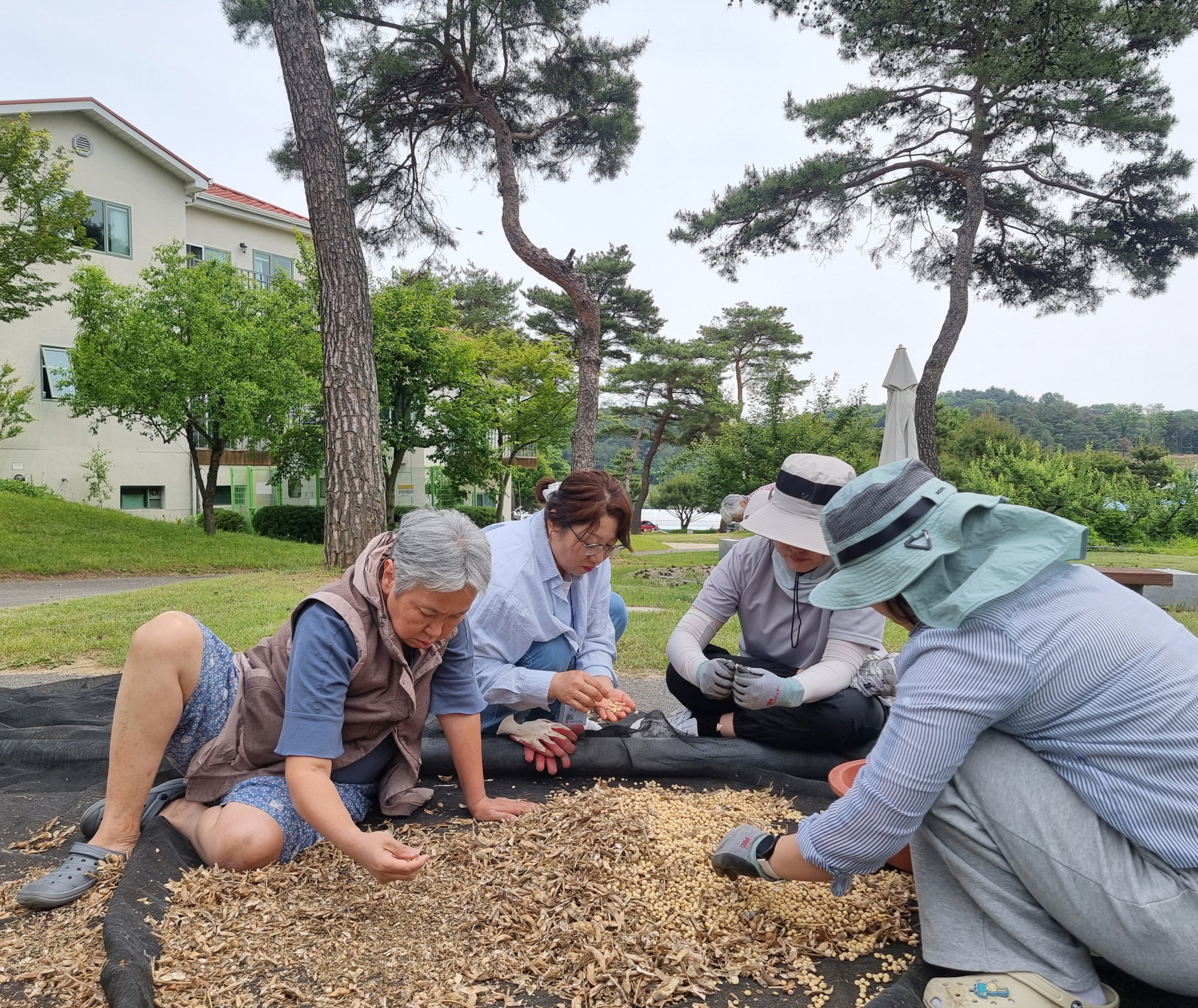 키질은 재밌어. 콩깍지 날아라.